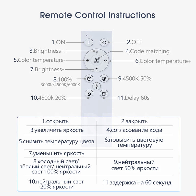 SPECIFICATIONSBrand Name: MARPOUInstallation Method: self-containedIs Bulbs Included: YesOrigin: Mainland ChinaCertification: CCCCertification: ceCertification: ROHSHign-concerned Chemical: NoneIs Smart Device: YESBase Type: NoneBody Material: PCFinish: PCTechnics: PaintedFeatures: APP and remote controlMaterial: PP/PlasticModel Number: Smart ceiling lightItem Type: ceiling lightsNumber of light sources: > 20Lighting Area: 15-30square metersPower Source: ACIs Dimmable: YesSwitch Type: REMOTE...